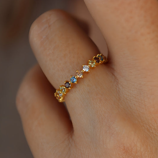 ANILLO ALEGRIA. Anillo en Plata de Ley 925 bañada en oro de 18K con circonitas de colores