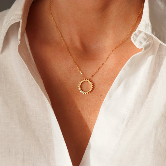 COLLAR ALICIA. Cadena de Plata de Ley 925 bañada en oro con colgante de sol