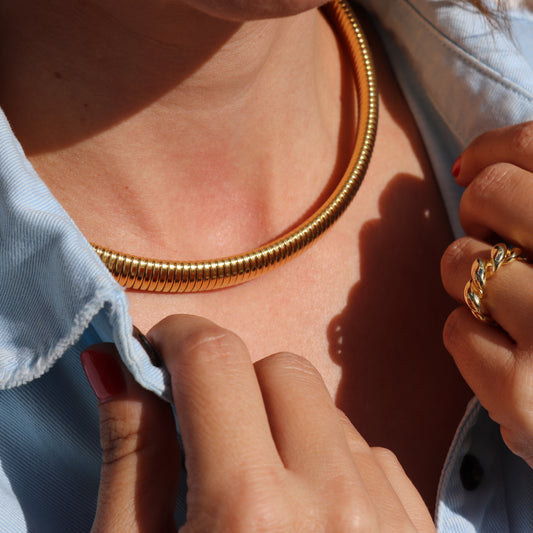 COLLAR CALA. Gargantilla elástica y ajustable de acero inoxidable bañado en oro