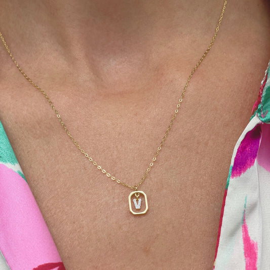 COLLAR DEVA. Collar personalizado con inicial mini en Plata de Ley 925 bañada en oro de 18K y circonitas blancas
