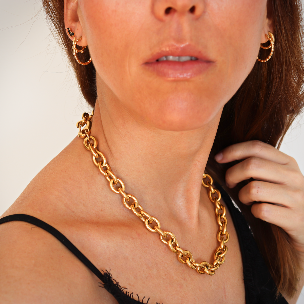 PENDIENTES EMILIANA. Aros de acero inoxidable bañados en oro de 18k