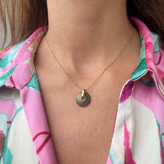 COLLAR DALIA. Collar de plata de ley 925 bañado en oro de 18k con colgante decorado con circonitas multicolor
