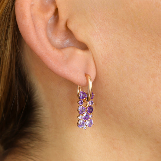PENDIENTES EVA. Aros de Plata de Ley 925 con colgante en forma de gota y circonitas violetas