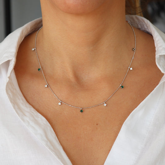 COLLAR DAFNE. Collar de plata de ley 925 recubierto de rodio blanco con detalles de circonitas blancas y verdes