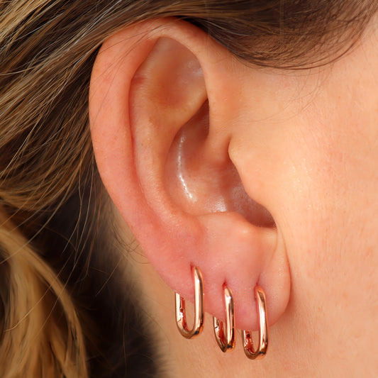 PENDIENTES CARMELA. Aros con forma ovalada de Plata de Ley 925 bañados en oro rosa