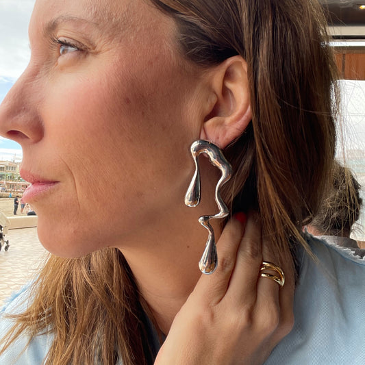 PENDIENTES DANIELA. Pendientes largos en color plata en forma irregular