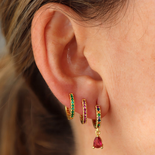 PENDIENTES BECCA. Aros en Plata de Ley con circonitas de colores