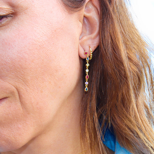 PENDIENTES ARIA. Pendientes largos en Plata de Ley con circonitas de colores