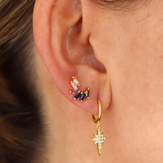 PENDIENTE TELMA. Pendiente suelto trepador en Plata de Ley 925 bañada en oro con circonitas multicolor