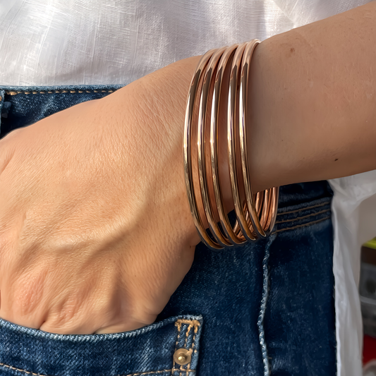 BRAZALETE ALMA. Pulsera brazalete rígido de acero inoxidable bañado en oro rosa
