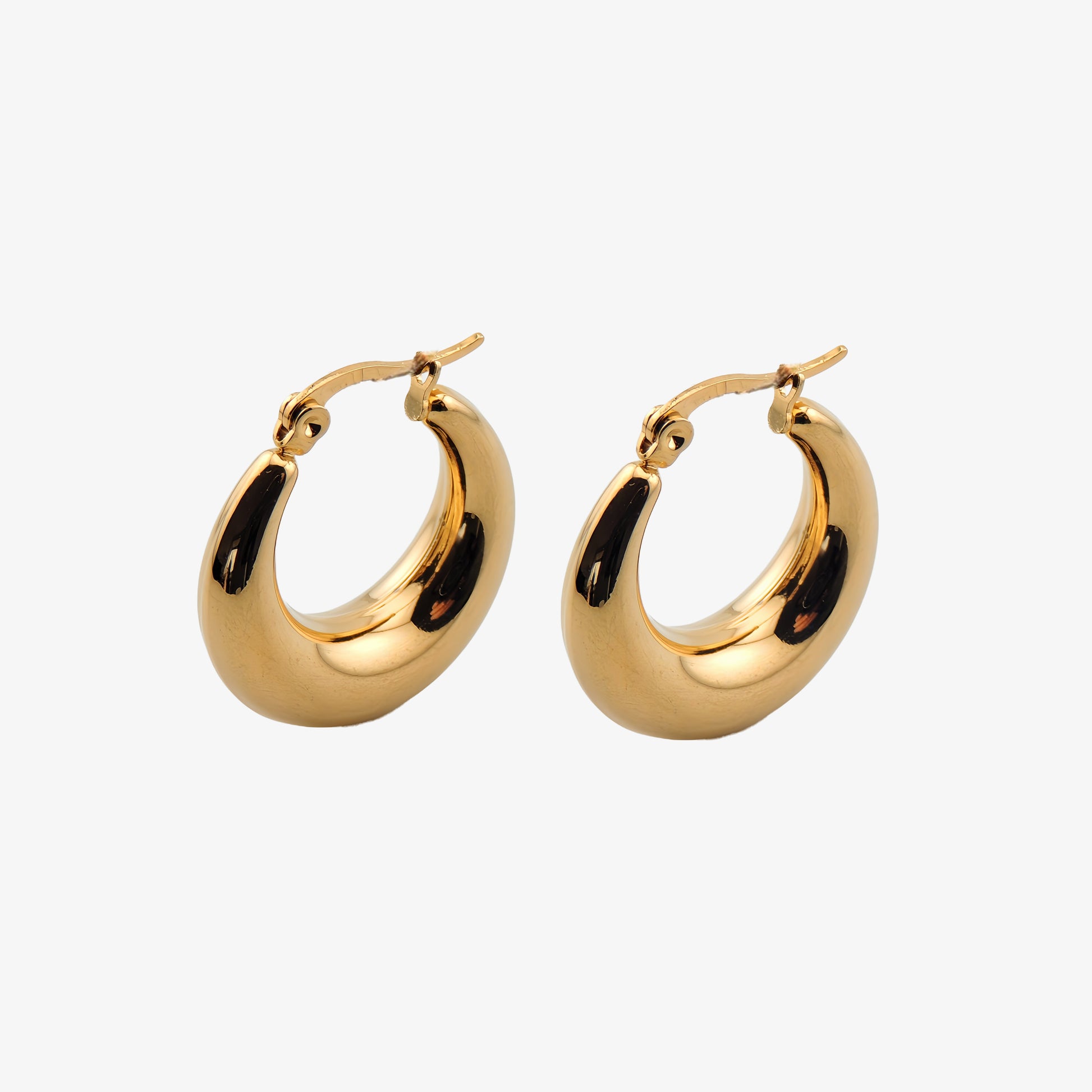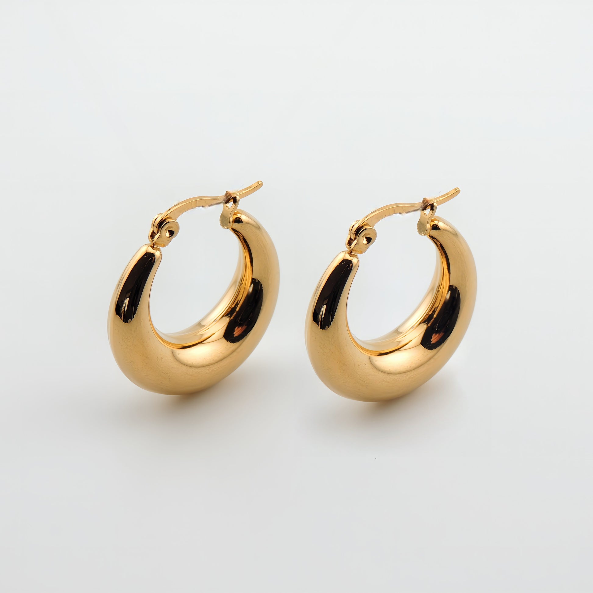 PENDIENTES PILAR. Aros en acero inoxidable bañado en Oro de 18k