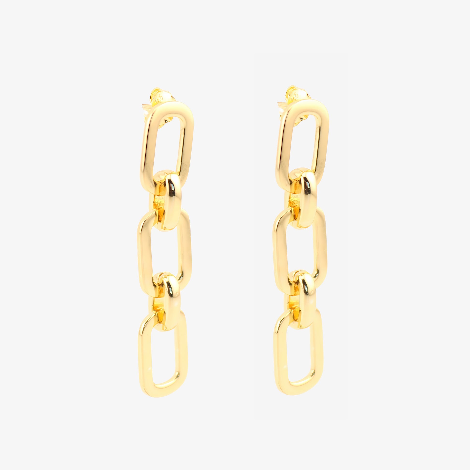 Sumérgete en la elegancia moderna con nuestros pendientes largos elaborados en Plata de Ley 925 bañada en oro 18 quilates, presentando un diseño de eslabones encadenados. Estos pendientes son una declaración de estilo. Su diseño de eslabones encadenados ofrece una estética contemporánea y versátil, perfecta para complementar cualquier look, desde lo casual hasta lo más sofisticado. El regalo perfecto para una ocasión especial.